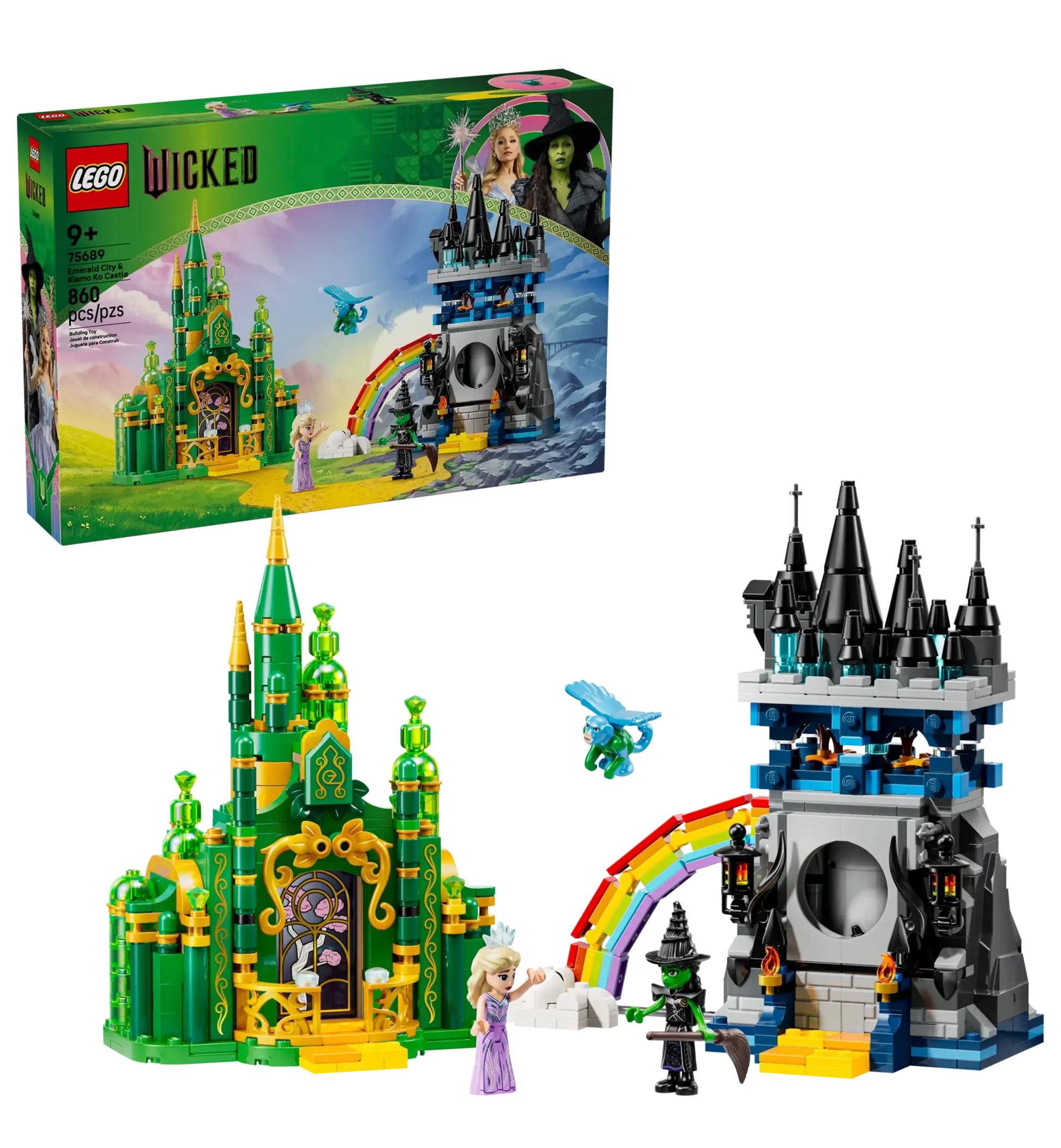Unleash “unlimited” Wicked adventures with the LEGO 75689 Emerald City & Kiamo Ko Castle building toy, perfect for kids aged 9 and up. This playset allows fans of the movies to recreate the emotional scenes from Wicked: For Good, featuring beloved characters Glinda and Elphaba.