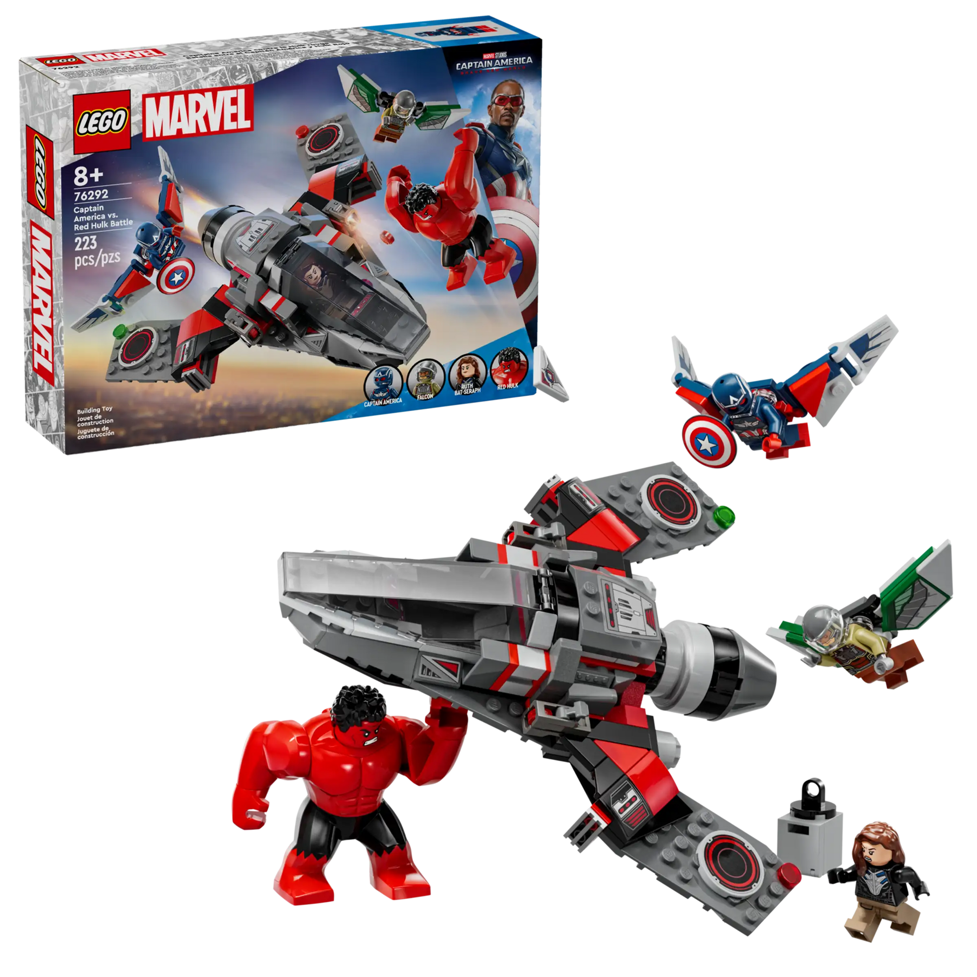 - LEGO® Marvel Avengers minifigures: Includes 4 minifigures: Captain America and Falcon with opening wings, Red Hulk, and Ruth Bat-Seraph.
