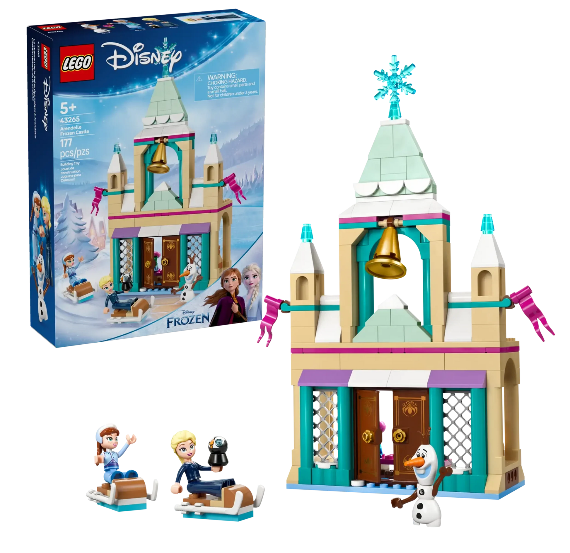 Embark on winter adventures with the LEGO® Disney Frozen Arendelle Frozen Castle (43265) building toy, perfect for kids and fans aged 5 and up. This engaging playset features a buildable castle with opening doors, a dining room, a cozy bedroom, and two buildable sleds for racing fun!